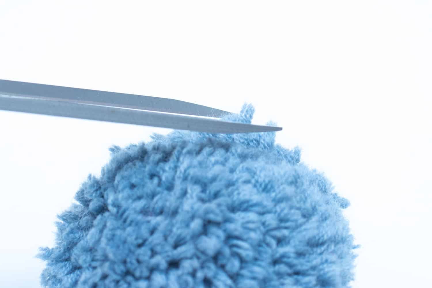 Trim any uneven strands, and fluff the pom-pom by pulling the strands and rolling it gently between your hands