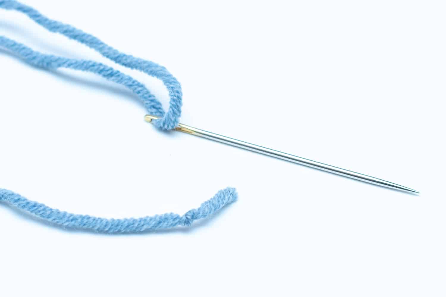 Use the same yarn and thread the strand through a large hand sewing needle. Tie a knot at the end of the yarn.