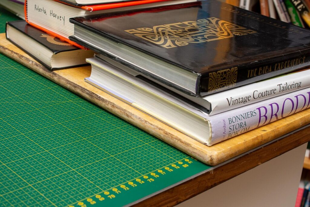Curious about how I built my large cutting table (hint: it’s an Ikea hack). Check out my tutorial on how to build your own cutting table on wheels with lots of storage.