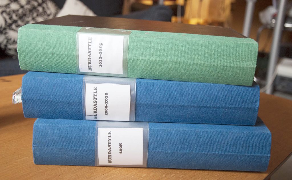 If you are like me and have a lot of pattern magazines, I strongly recommend using binders and envelopes to store them. You can, of course, also use regular magazine filers, and I use them for one-off magazines. But for Burdastyle, I’ve created this really great system that makes it easy to find each issue.