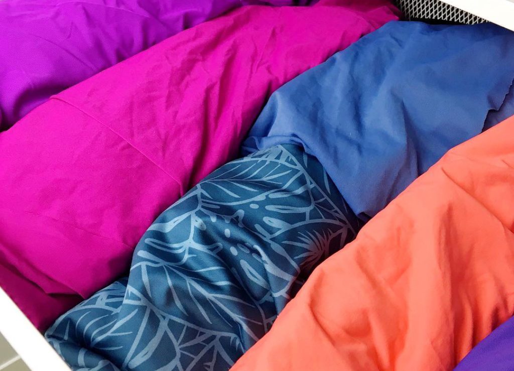 My activewear fabric collection. This is my old storage; right now, I’m back to using plastic boxes for everything, but the fabrics are still organised after type.