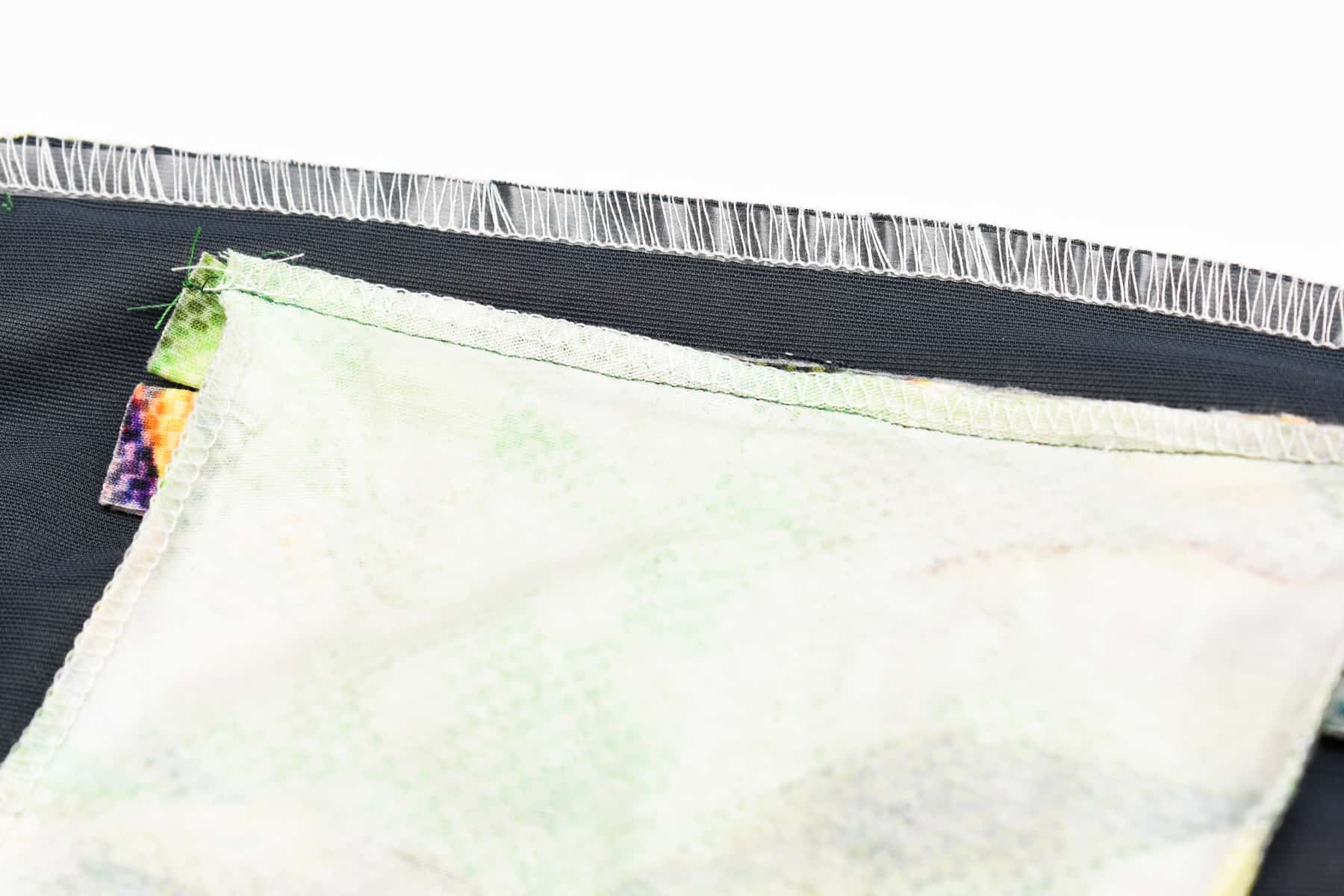 Attach the waistband to the leggings. I like to enclose the pocket pouch in the waistband seam so that it doesn’t flop around.