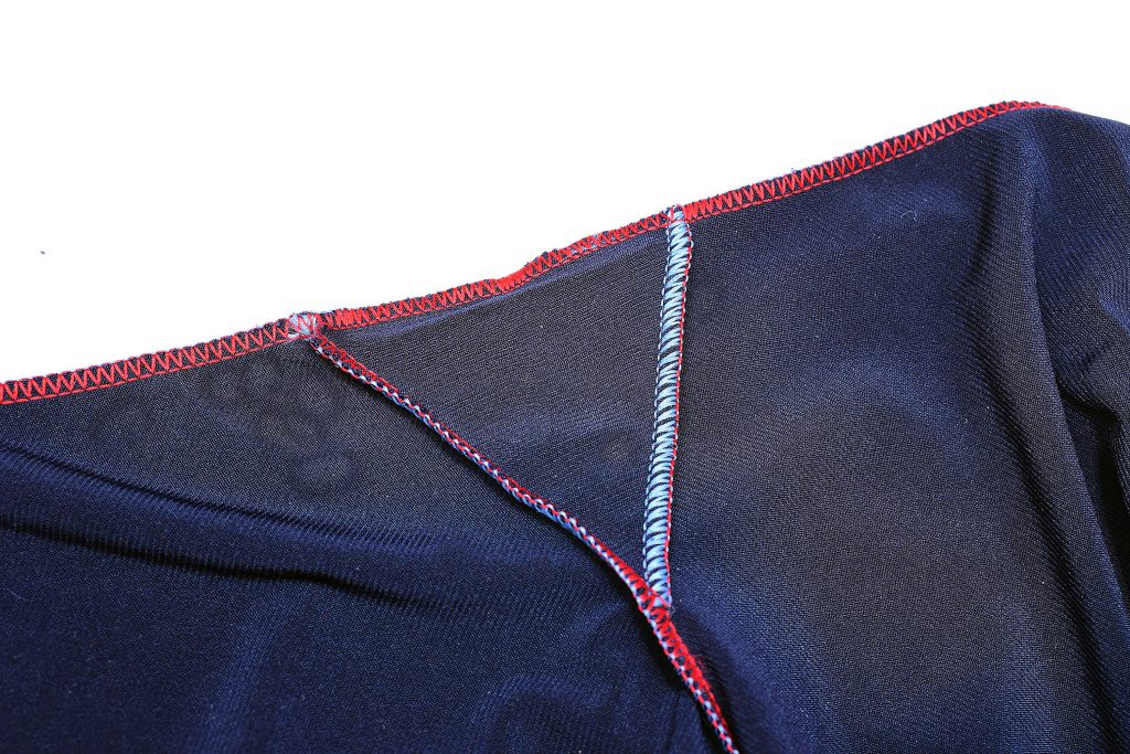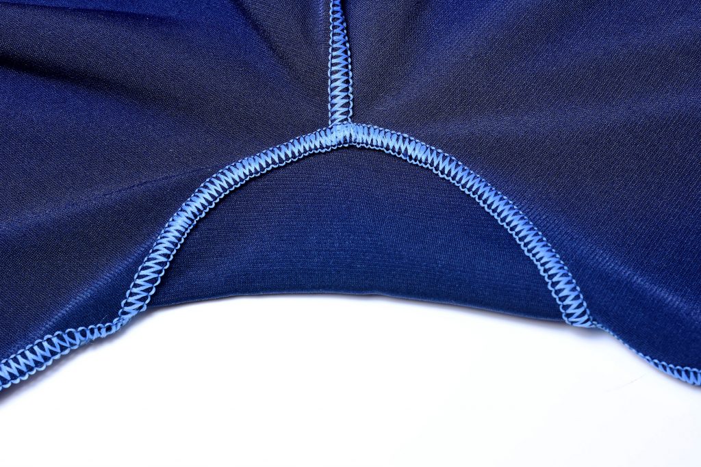 A third option is to just use the 2- or 3-thread flatlock serger seam and sew the entire crotch area using that stitch. A serger flatlock is however less durable than the method described above, but it can look very similar to a professional flatlock stitch and there will be no chafing seams on the inside.