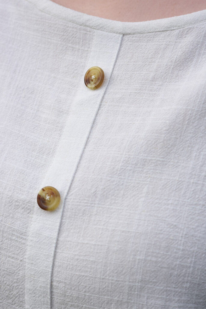 Anja also wanted to only have decorative buttons with no proper placket. Which I’m honestly not a big fan of for more dressy styles, as I think it brings the look down a bit. So instead I constructed a proper placket and then topstitched it in place so you can’t open it.