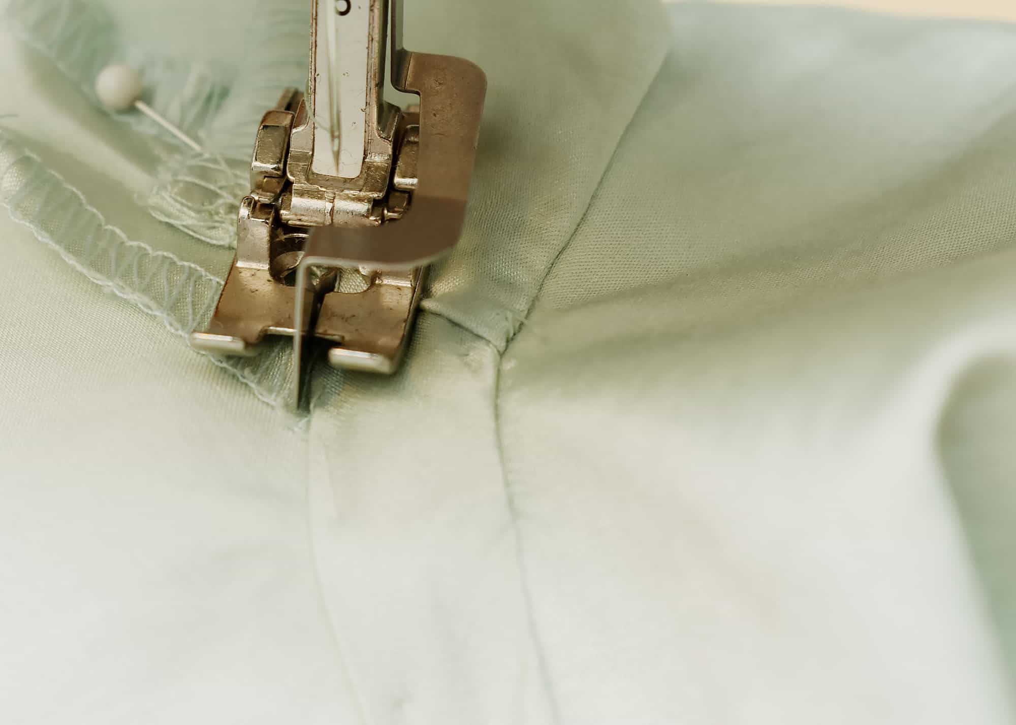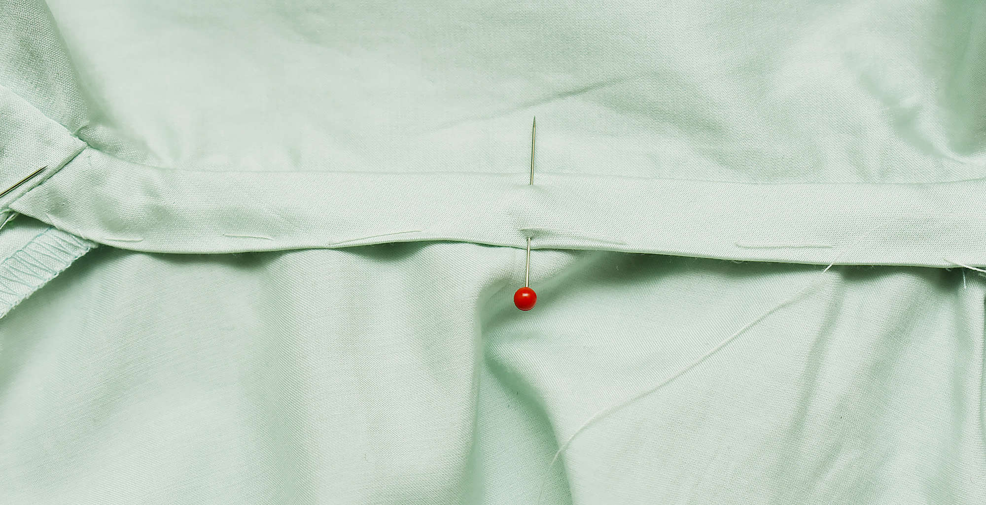 • Sew (don’t topstitch) the upper edge of the bias tape. Attaching the tape to the neckline seam by stitching along the seam line and then folding the tape over leaves less room for errors compared to topstitching the entire band in place.