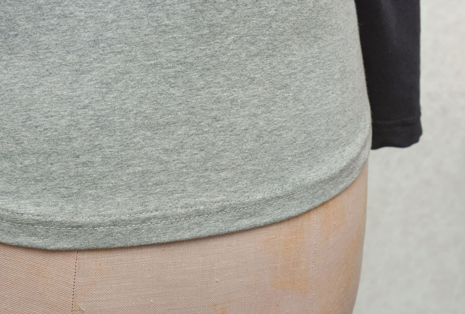 Close-up. I was lucky to find the same fabric in two colours, it’s an organic cotton jersey with a little Lycra in it. Again you can see how nicely the raglan sleeve is shaped. Yes, I’m particular about this stuff!