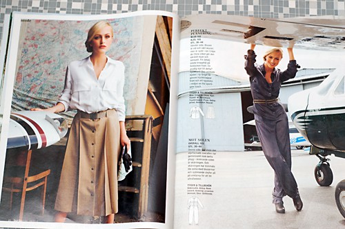 As for the rest, I would label this issue as a very trendy issue – at least for being Burda. Instead of pushing their usual aesthetics, they really have focused on strong trends for fall, ie aviator, amish/rural, leather and late 50’s/early 60’s retro glamour. I felt a bit lukewarm about the October issue at first, but it is gowning on me. Living in Sweden, the home of sparse and clean lines, it’s can sometimes be a bit hard to swallow Burda’s more central European aesthetic. But this issue is one of those that feels more in line with what appeals to me.