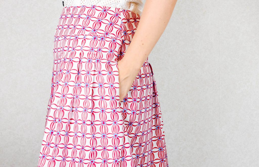I simply adore this skirt and was so happy to finally find the perfect fabric for the style I wanted to make. The fabric is a cotton poplin sourced in Italy and is probably made for one of the more prominent design houses over there, it’s such a nice quality and a dream to wear on warm summer days!