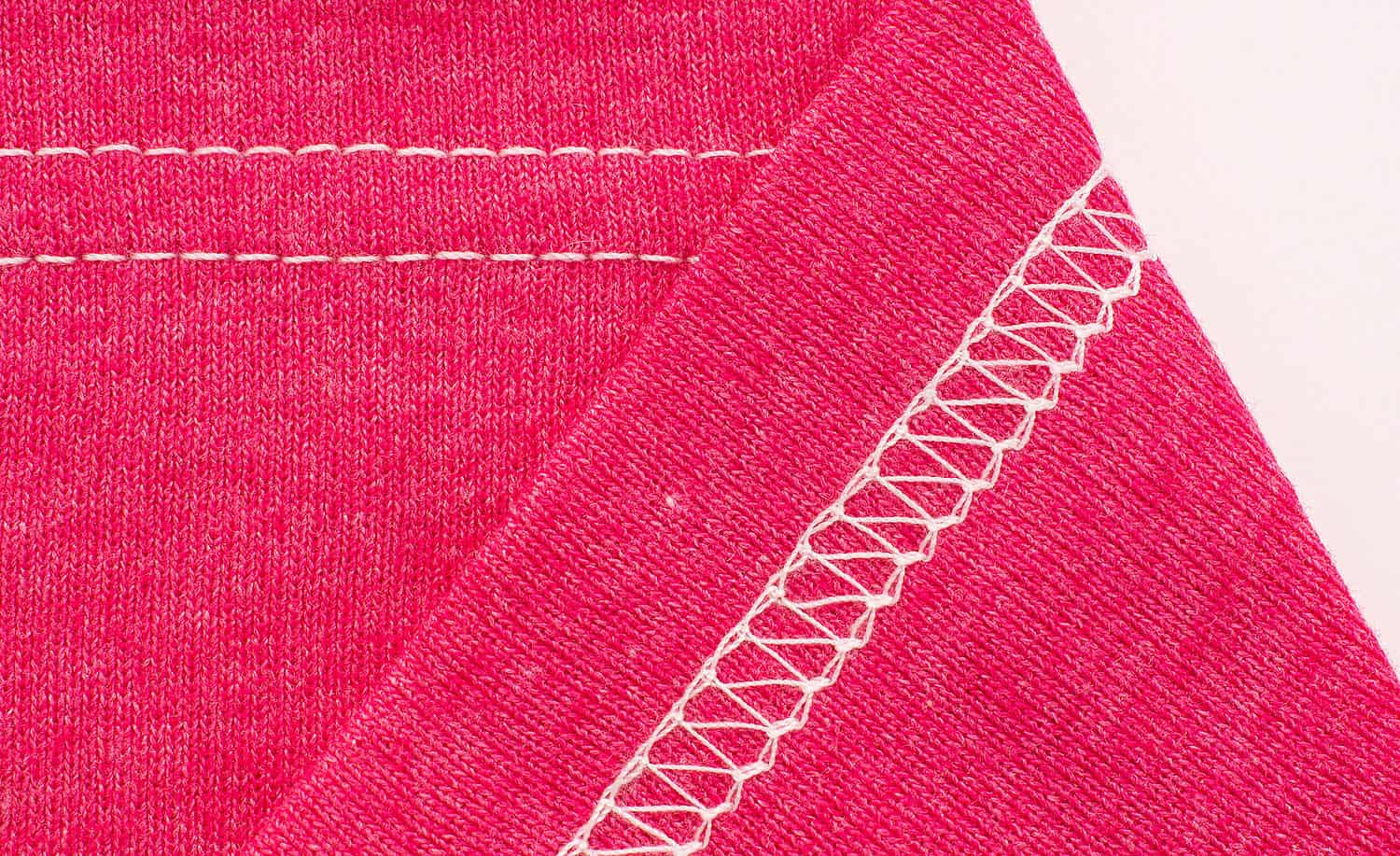 On the right side, a twin-needle stitch looks quite similar to a narrow 2-needle coverstitch seam, but on the reverse side, there is a zigzag stitch instead of a looper grid.