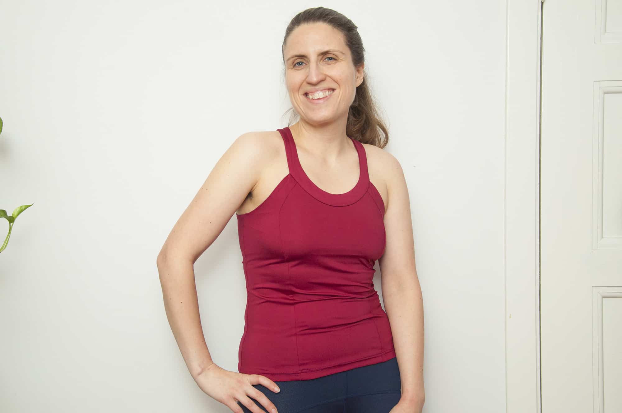 This top the result of a batch sewing session earlier this year, when I made three different workout tops using the same fabric. This top was also made during this session. I don’t do this normally, but it was a nice change not having to switch thread and settings on the machines and just focus on one thing. I think I also did save quite some sewing time doing this, the only downside is that it might be a bit boring having three tops in the same exact fabric. Plus the wicking properties are not as stellar as I had hoped for, thus the tops are not a great choice for intense cardio. So I mostly wear these when strength training.