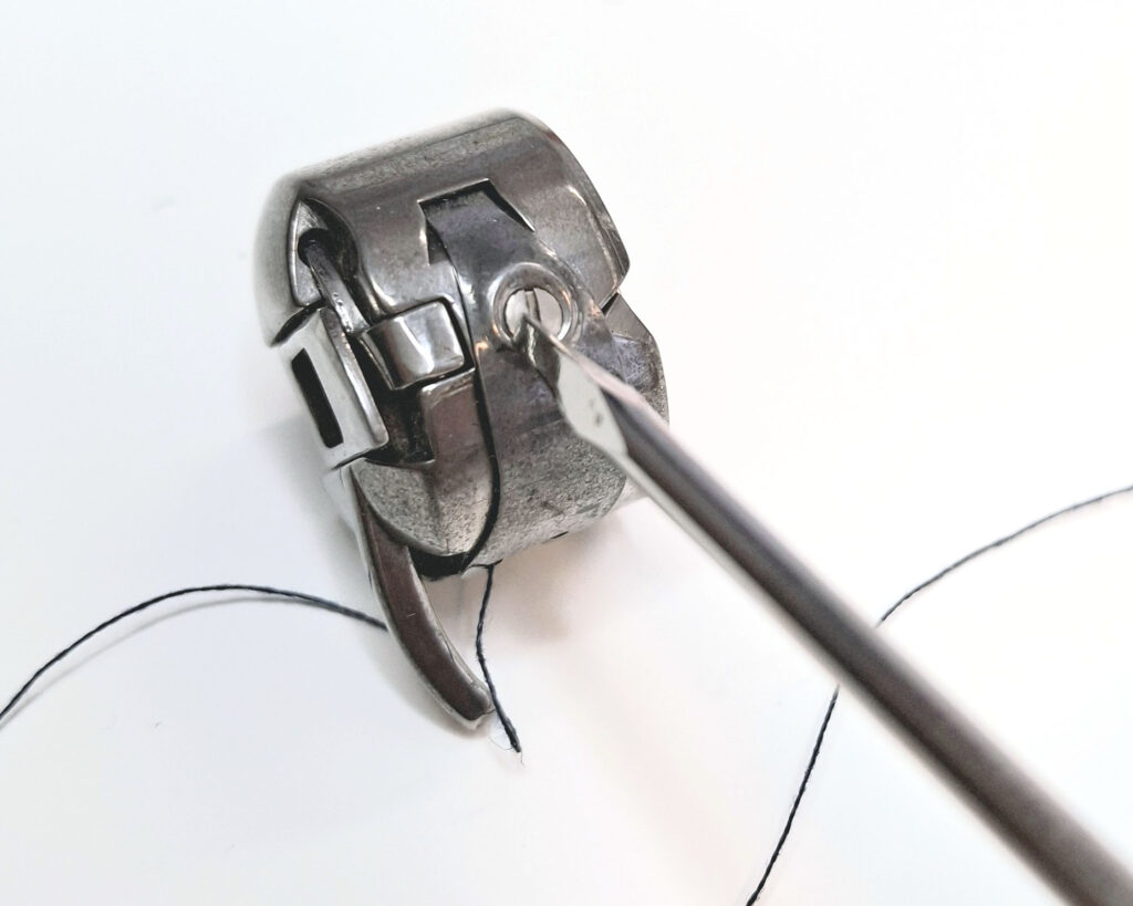 - Use a small screwdriver to turn the screw on the bobbin case.