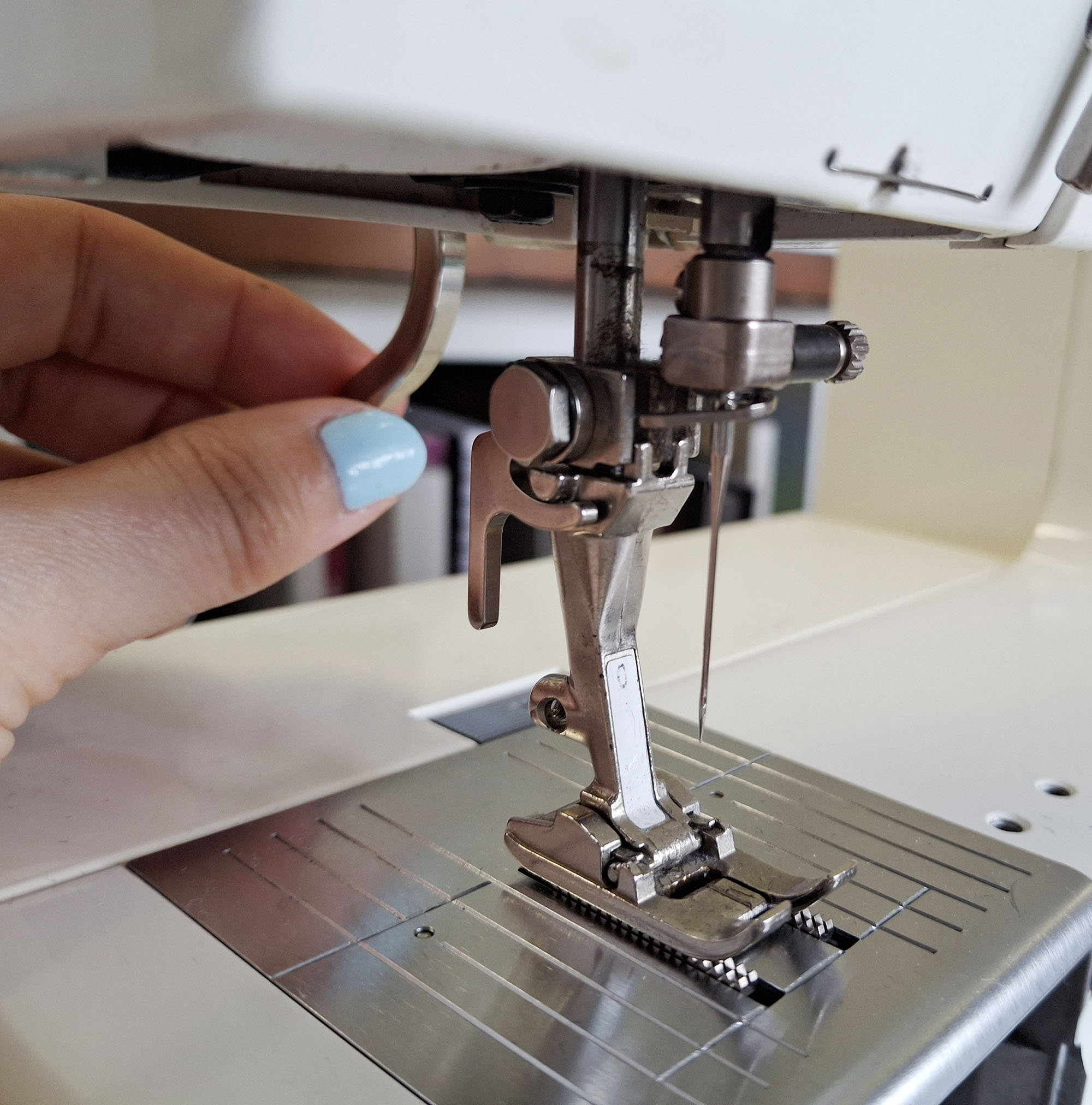Not lifting the presser foot when threading the sewing machine