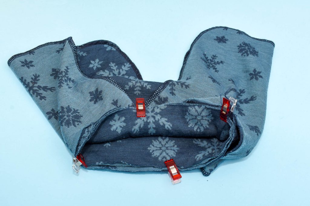 You have two options for making the bib pattern, drafting the pattern from scratch or using a sewing pattern for a knit top with a turtle neck.