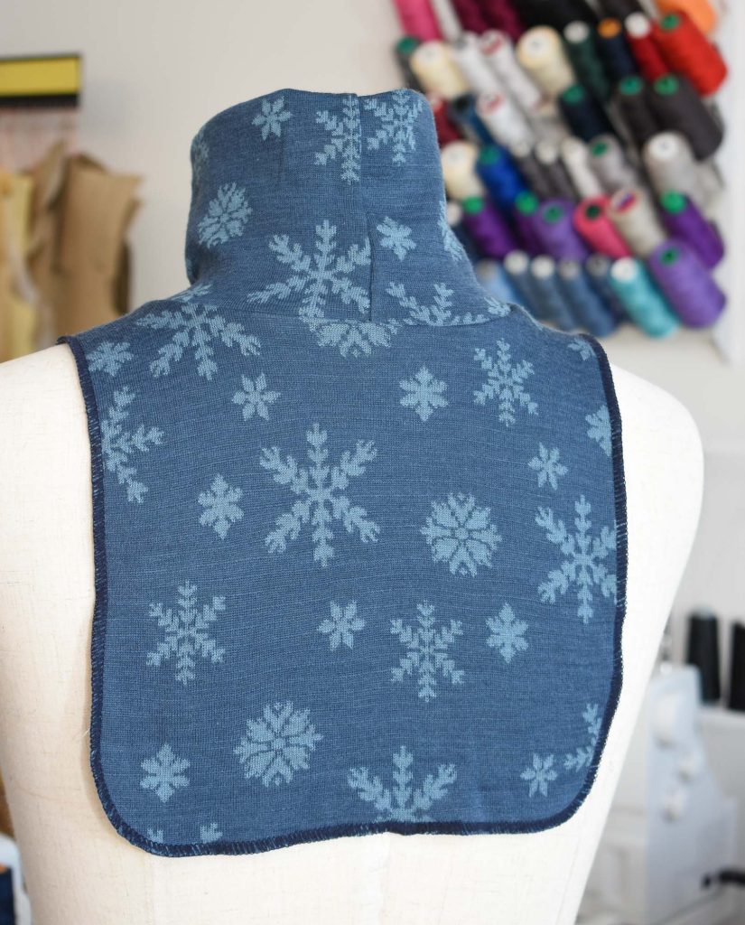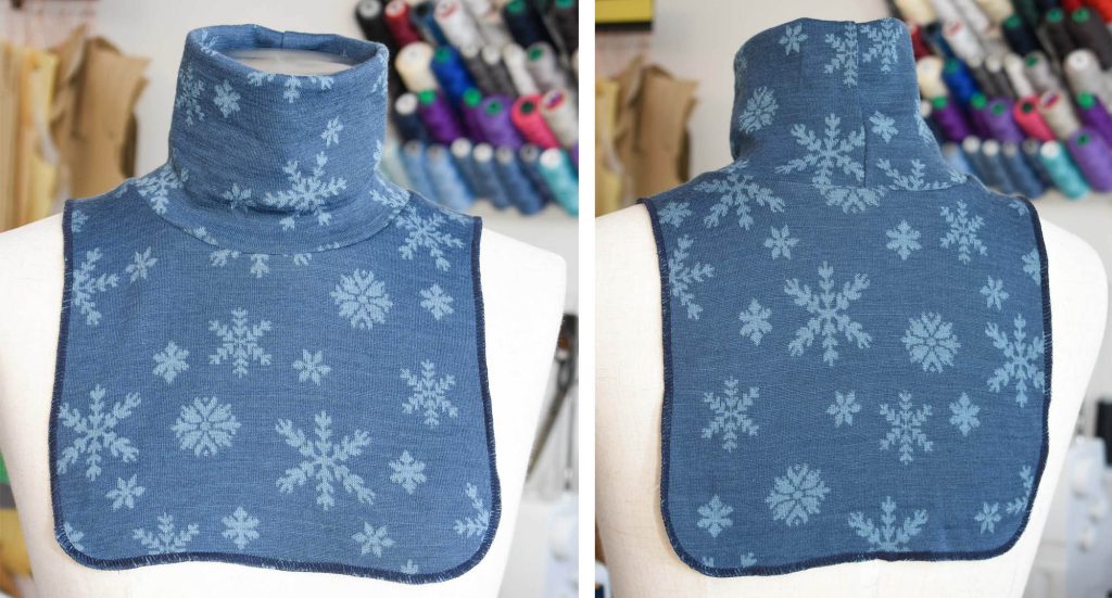 I used my Gurli Knit Top sewing pattern to draft the bib pattern, but any sewing pattern for a knit top or sweater with a turtle neck will work.