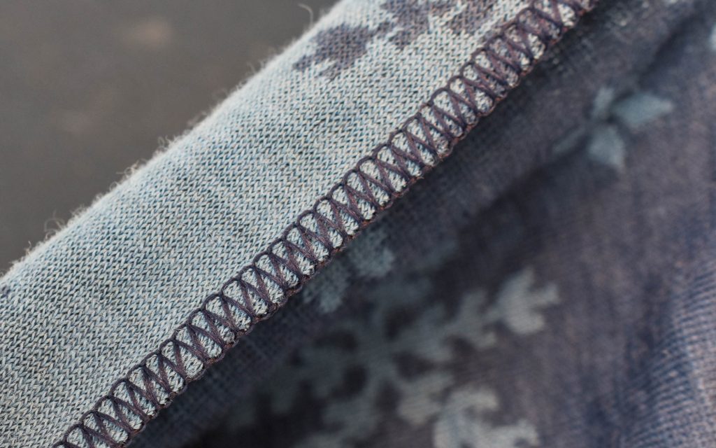 If you have a serger, I recommend using the wide 3-thread overlock or the 3-thread flatlock. For a beautiful finish, use flossy woolly nylon (Amazon affiliate link) or another thicker thread in the looper.