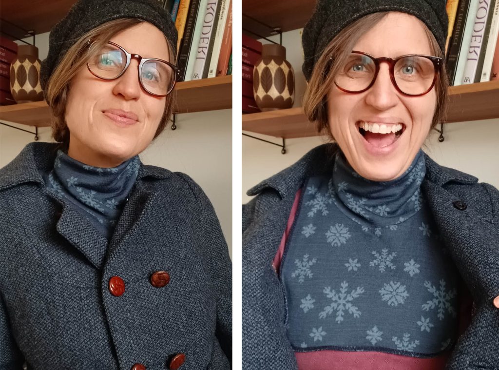 Ready to face the winder chills with my new bib wearing my Burdastyle Tweed Jacket and Iselin Beret.