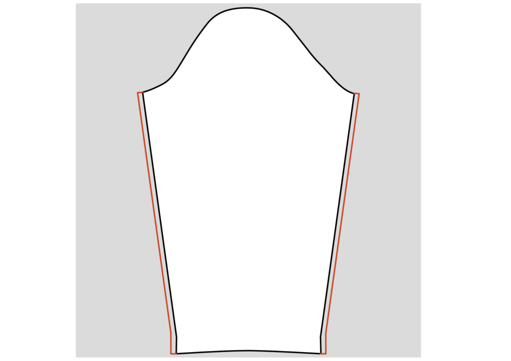 In this case, we are adding a total of 4 cm (1 ½”) extra ease to the garment, meaning that there will be 1 cm (⅜”) added on each piece (that will be cut twice).
