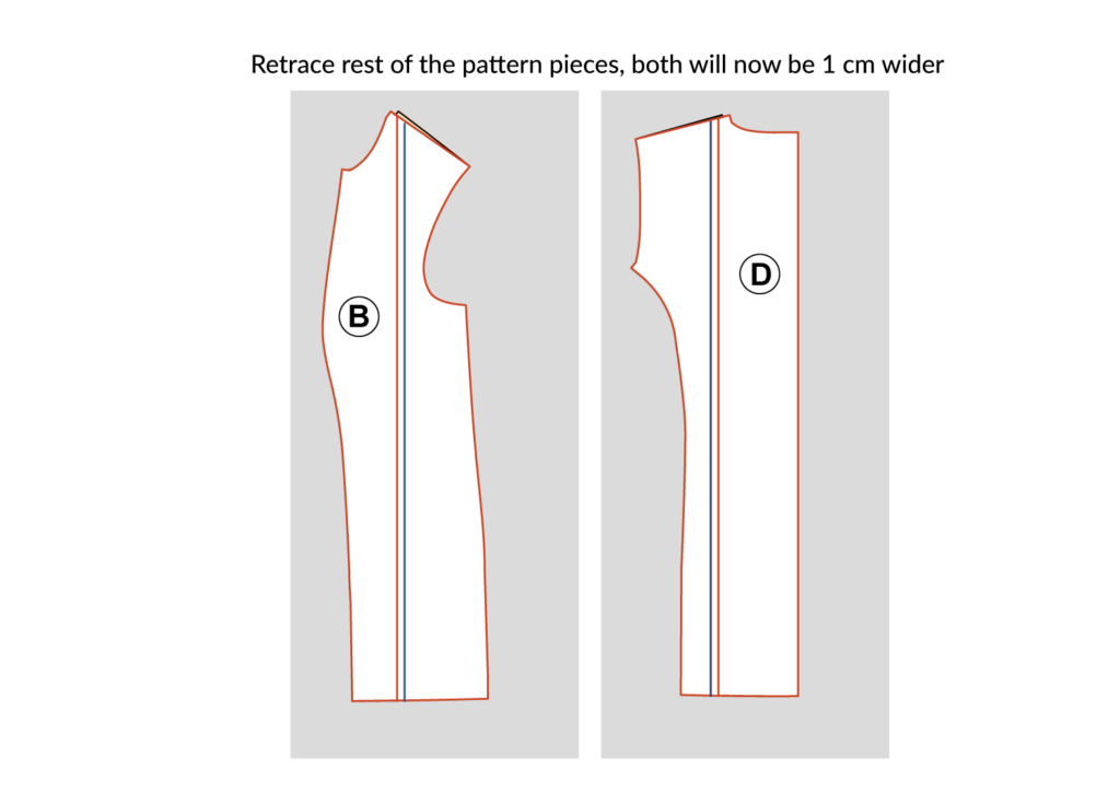 This is how we will widen the pattern since this 1 cm shift will add the extra ease.