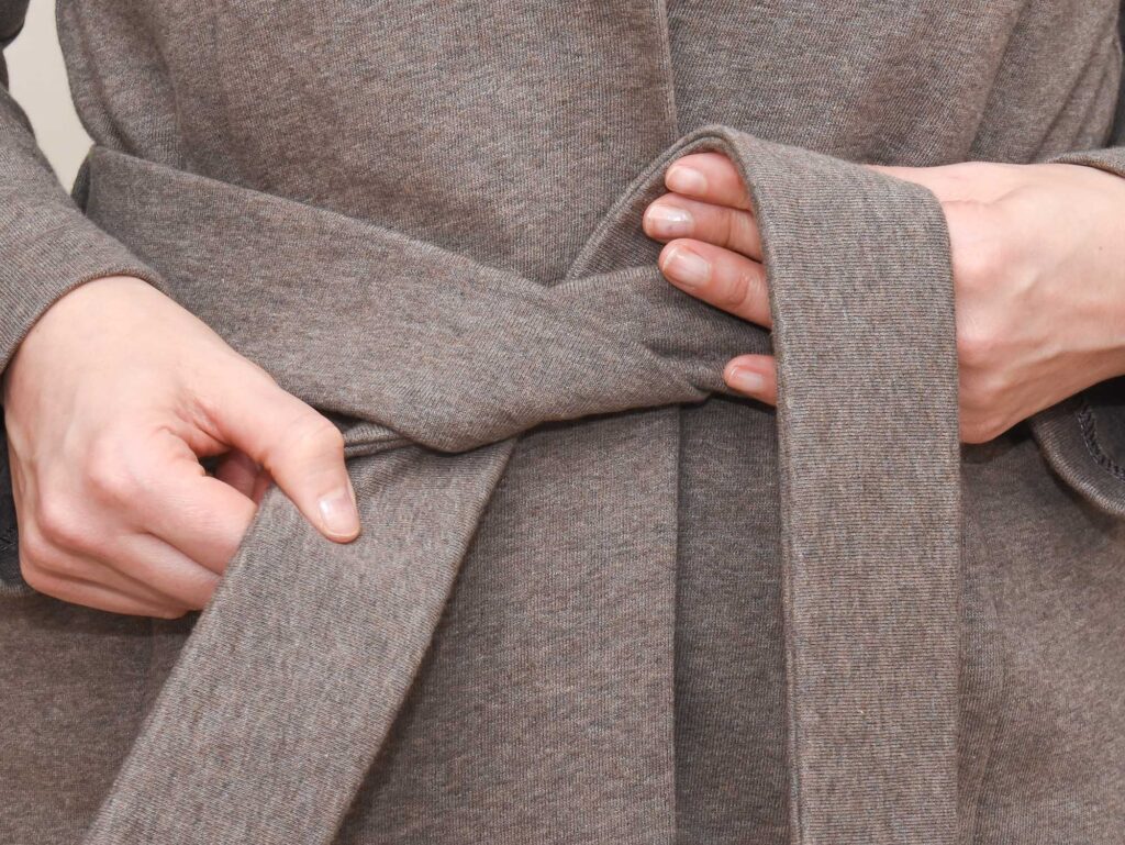 This tutorial is part of the Sew-Along for the Eivy Cardigan Sewing Pattern and is especially useful for sewing belts on stretchy fabrics, but the same method can be used for woven fabrics too.