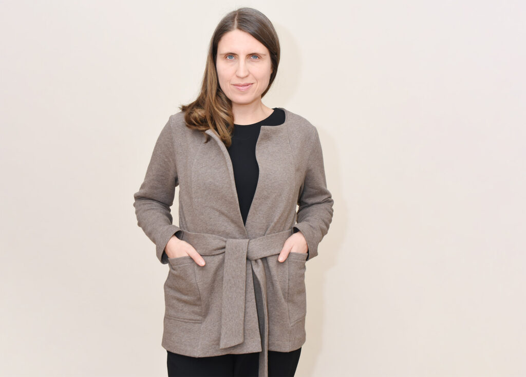 Insert the belt into the loops and enjoy your belted version of the Eivy cardigan! And remember to check out all the other tutorials in the Eivy Cardigan Sew-Along Series.