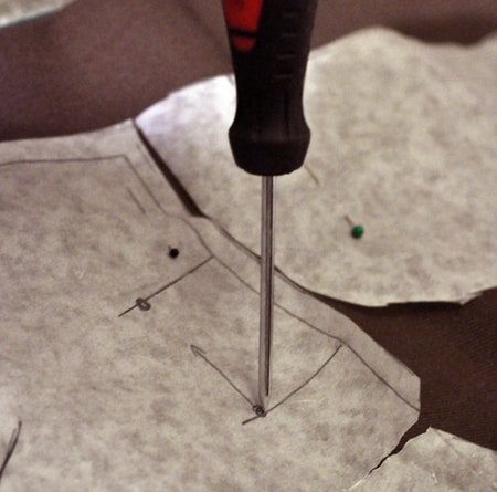 Do you guys use a tailor’s awl for sewing? I find it to be an excellent tool, perfect for marking everything from buttonholes to darts. I know it can be a bit intimidating to punch a hole in your precious fabrics, but if we get over that fear we will be rewarded with a really quick way to to mark all sorts of things. This is also a tool that is common in the sewing industry, and why not nick a trick or two from them!