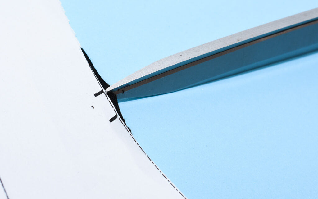 Tip: Mark the pleats and notches by cutting tiny snips, this is the fastest way to mark on fabric. Just make sure the cuts are shorter than the seam allowance (6 mm)
