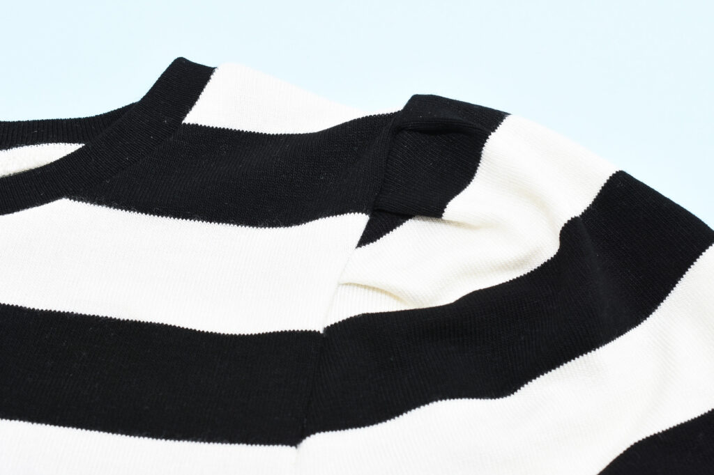 The sleeve cap on the Gurli Top is slightly shorter than the armhole (i.e. negative ease) for optimal fit and should be stretched out gently during the sewing. The important thing is to match the notches.