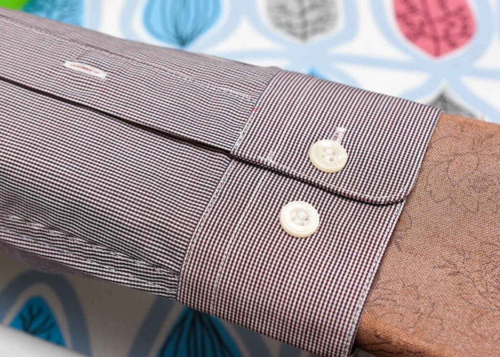 Button up the cuffs and lay them flat on the iron board. Start from the inside and don’t iron over the buttons, instead just iron around them.