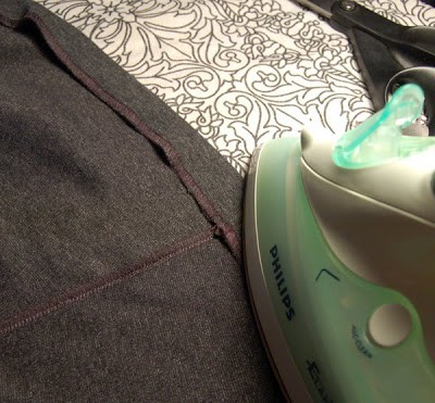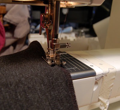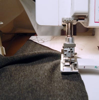 Make sure that the differential feed is set high, you don’t want the knit to grow. If you don’t have a serger, just leave the hem raw.