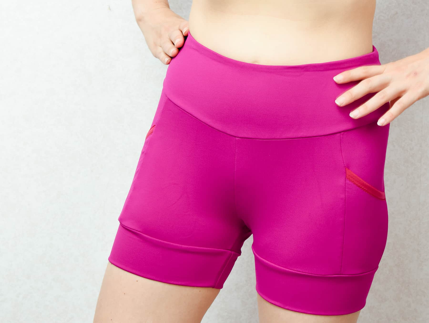 Matching shorts. Since the dress is quite short I added matching shorts. These prevent chafing and also provide some storage options. I used my own legging pattern and to stabilise the tight bands I lined them with power net. Still, the fabric is way too thin to use for shorts, these feel more like a pair of undies, to be honest!