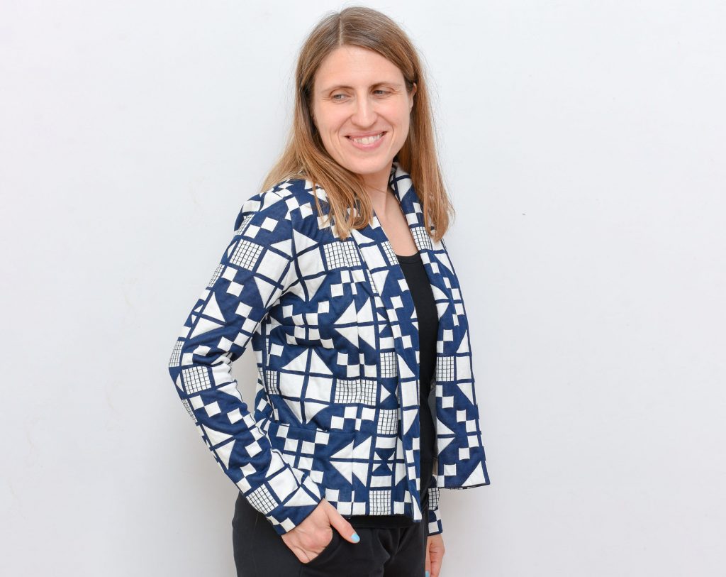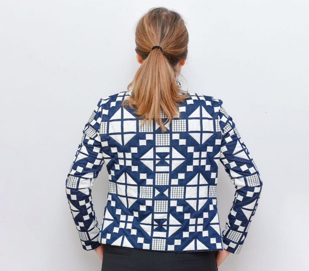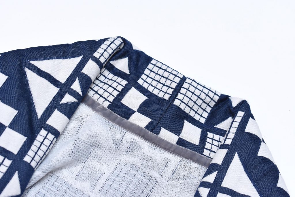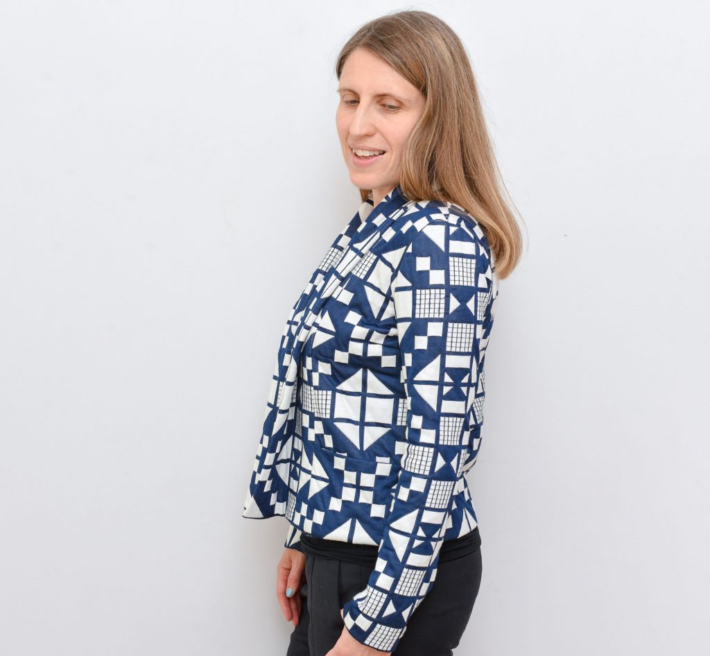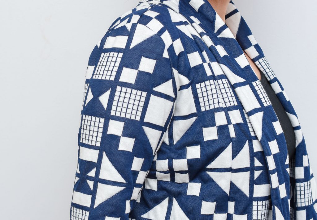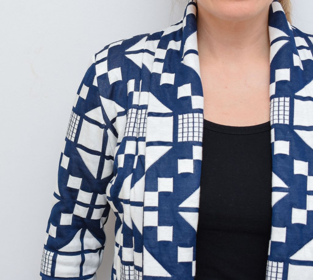 Sometimes the stars align and a garment turns out even better than I had hoped for. This was definitely the case with this cardigan jacket, and I think the biggest credit should go the fantastic fabric that I worked with – a quilted knit with a gorgeous pattern design.