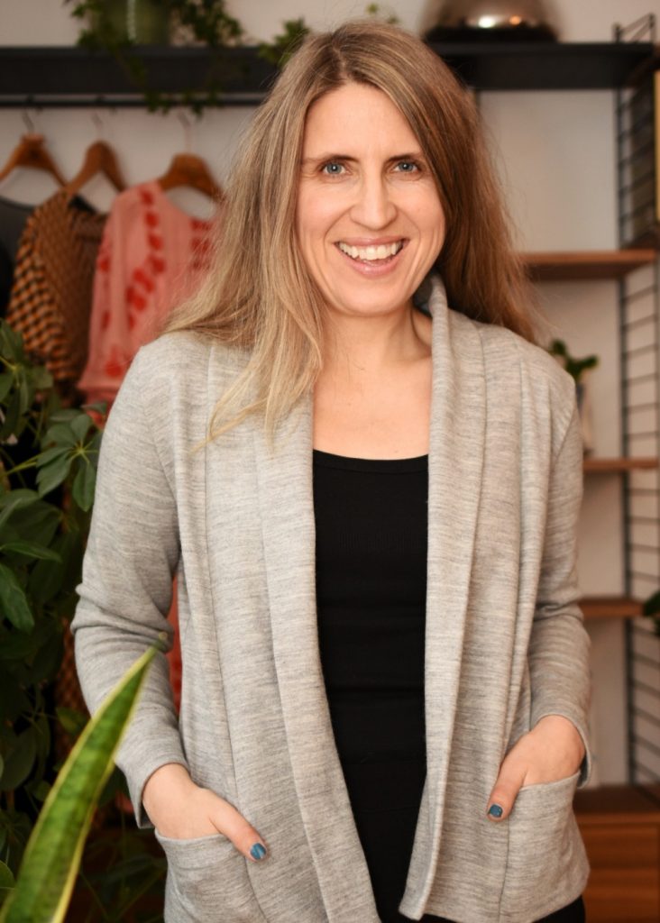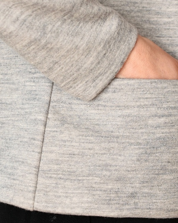 I added pockets that are inserted in the side and mid-front seams, the same method that I use for my Eivy cardigan pattern. If you have a similar pattern, you can add the pockets following my simple tutorial for adding pockets to a cardigan.