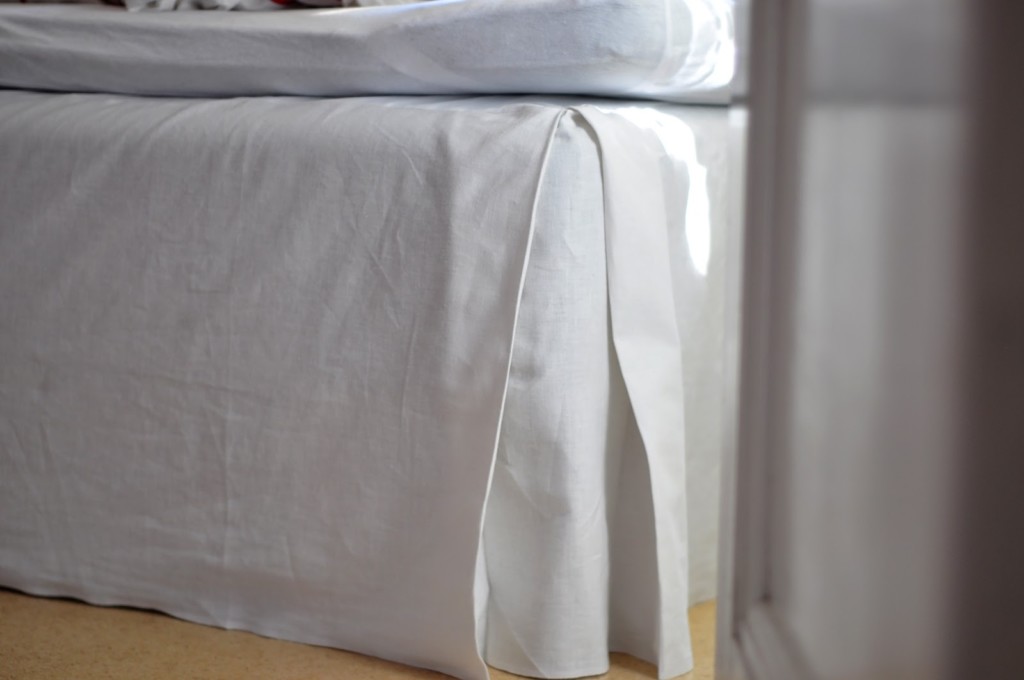 I made a a bed skirt too, but for that I cheated a bit and used a new cotton/linen fabric for the side pieces (the top fabric is a big vintage sheet though).