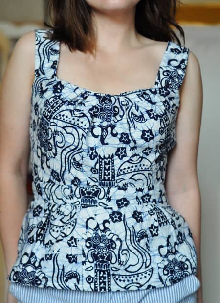 As for the pattern I plan to write a review on Pattern review tomorrow, but to sum it up – I really like the style and it is easy to assemble. A few things worth noting though: Firstly this pattern is very fitted and runs really true to size. I made a size 12 and my waist is 2 cm (4/5 inches) bigger than the pattern size, and I have to tell you that the fit is pretty snug. If I do this pattern again I need to adjust the waist a bit. Another thing is that the gathers in the front adds a lot of volume in the bust area. Personally I love it, suddenly my slight A/B cup looks like a C. But for someone with a fuller bust, this might perhaps be something that is less desirable?