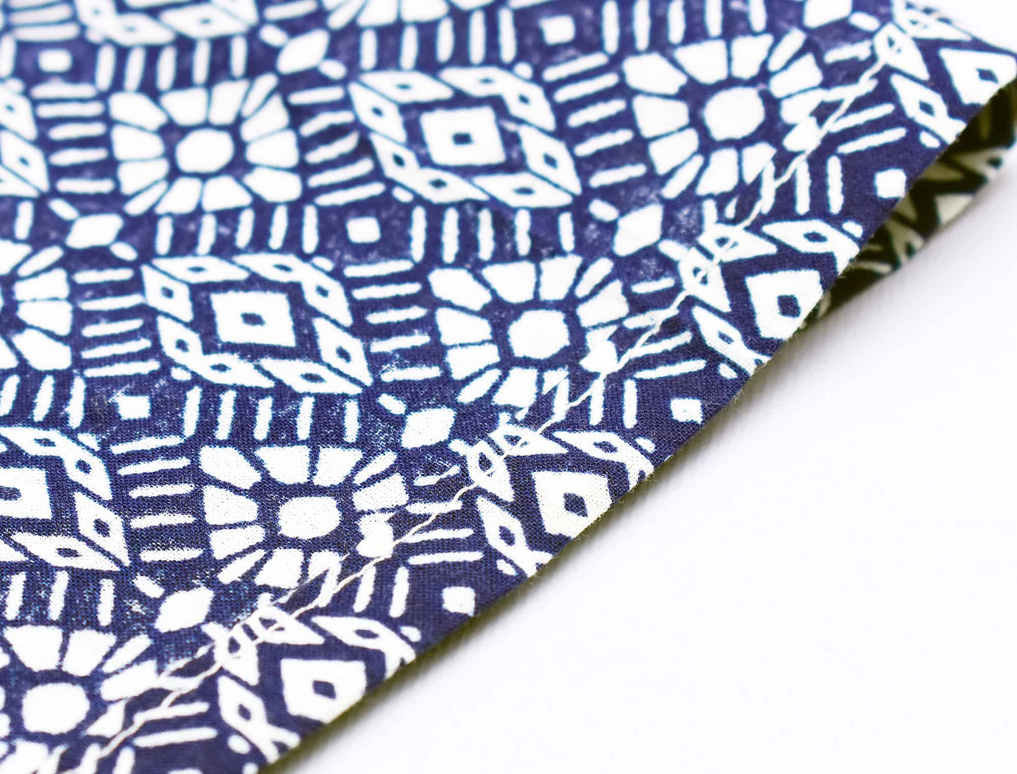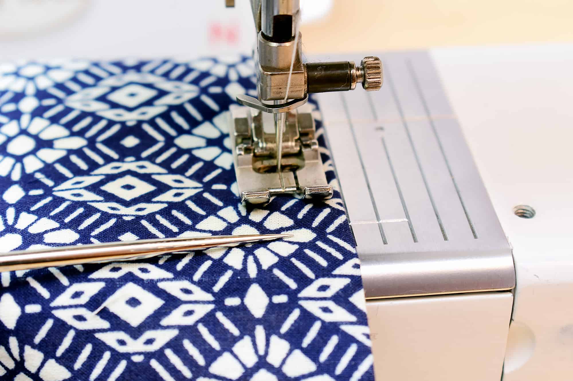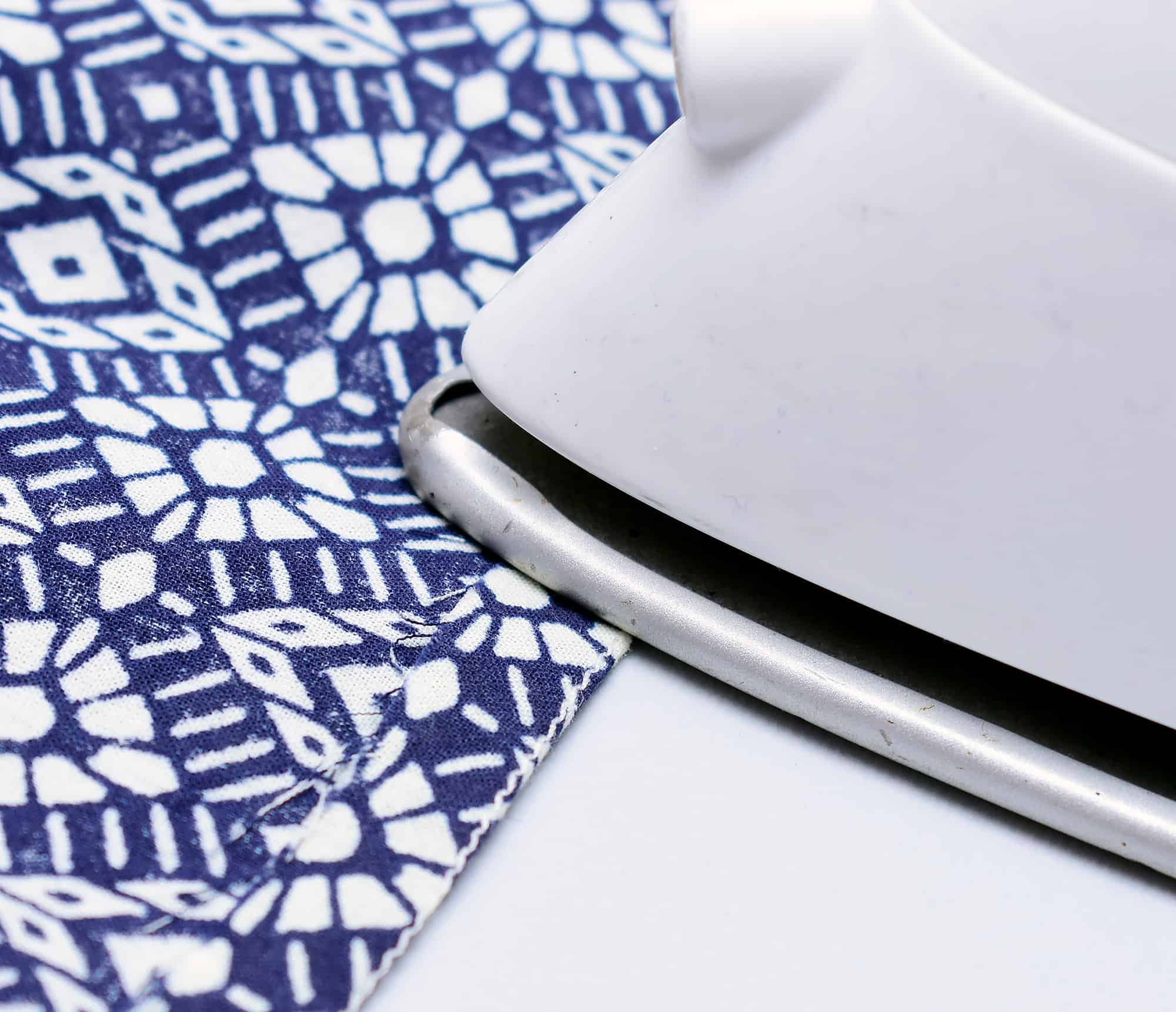 Try to sew close to the fold to get a really neat seam. But since we are humans and not robots the fold might be a tad bit uneven so to be on the safe side, sew a little farther from the edge to make sure the seam will catch the entire fold.