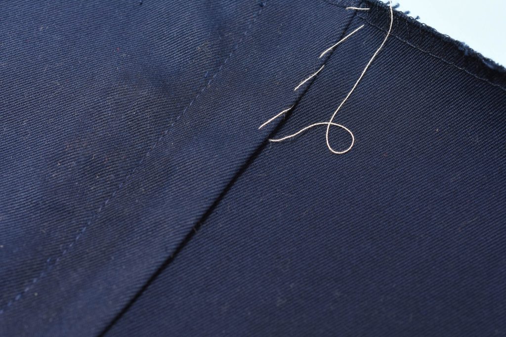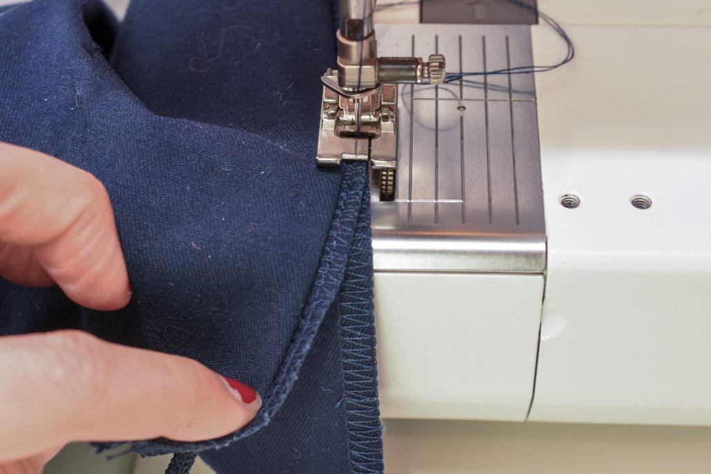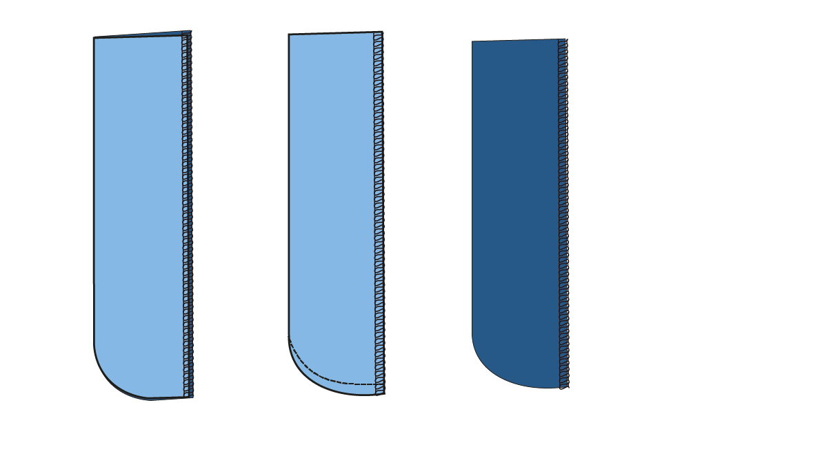 Overcast the edges as shown in the illustration. You can skip overcasting the waist, as it will be enclosed in the waistband and won’t unravel.