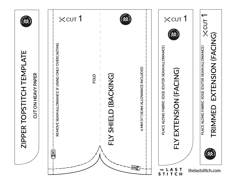 The zipper should be at least 2.5 cm (1″) longer than the fly opening. I recommend YKK zippers (Amazon affiliate link). - Fusible lightweight interfacing.