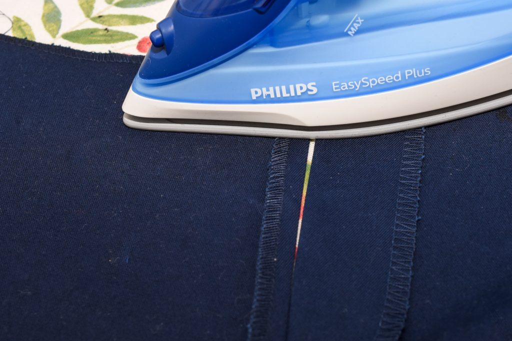 Press the folded edge in preparation for topstitching the folded edge. Again the fold doesn’t have to be super close to coils. If you place the fold slightly away from the coils, you can use a regular presser foot for this step.