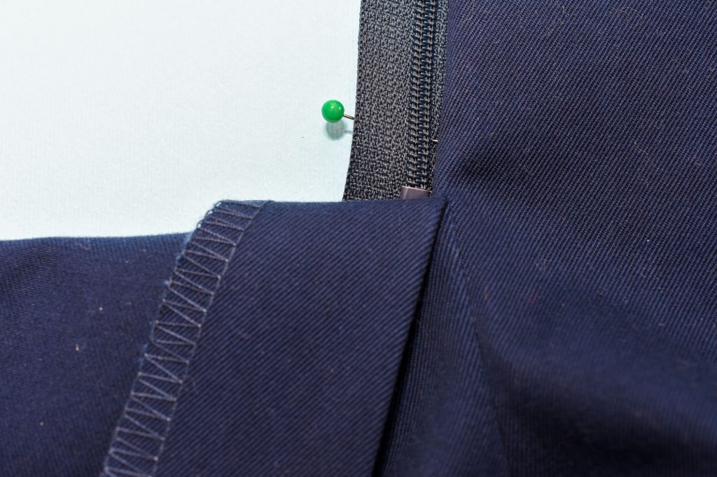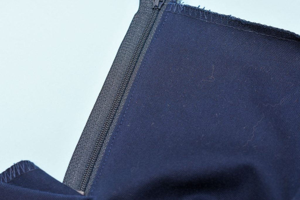 This is pretty much the final step. Trim away the extra zipper before attaching the waistband.