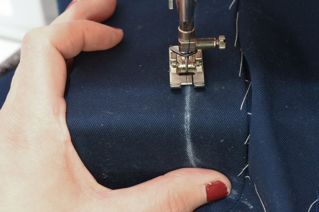 The finished topstitching. Notice the distance between the fold and the zipper coil, that’s the trick to use if you don’t want to switch to a zipper foot.