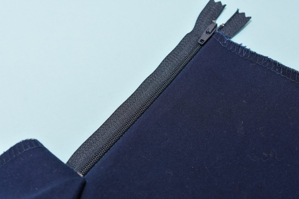Attach the zipper by stitching it close to the zipper tape edge. That way you won’t need to use a zipper presser foot, since you are sewing away from the zipper coils.