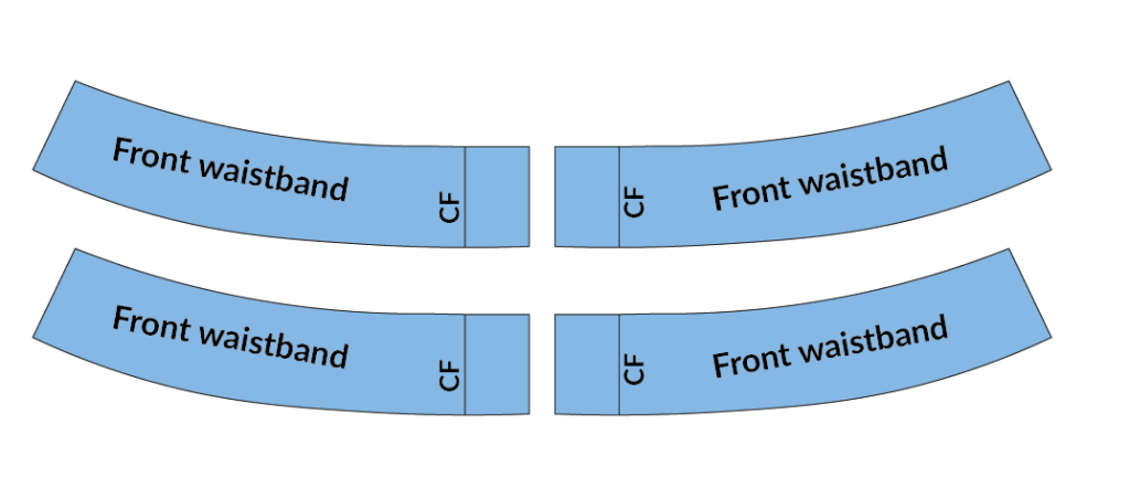 To make shaping and sewing easier use a narrower seam allowance on both the waistband and waistline on the pant pieces.