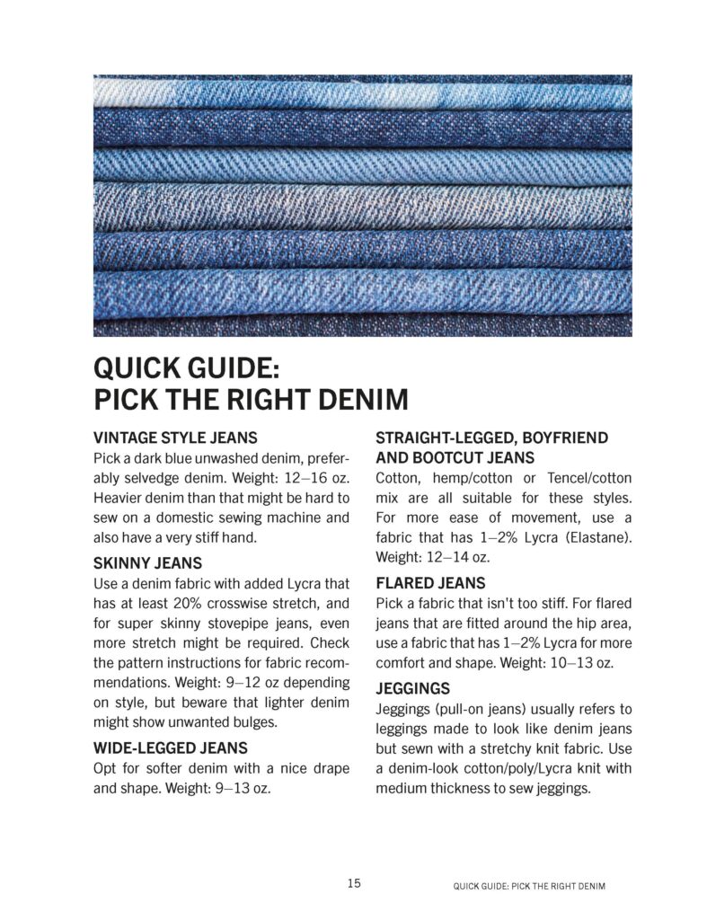 Using home sewing equipment and with multiple assembly options, the instructions in Sewing Jeans are geared towards both beginners and more experienced makers.