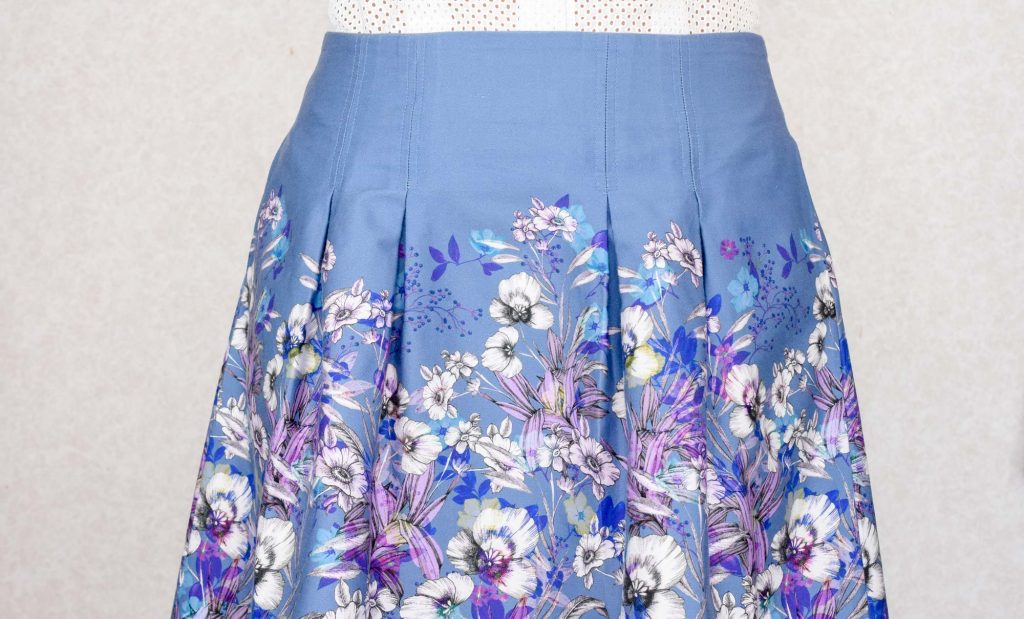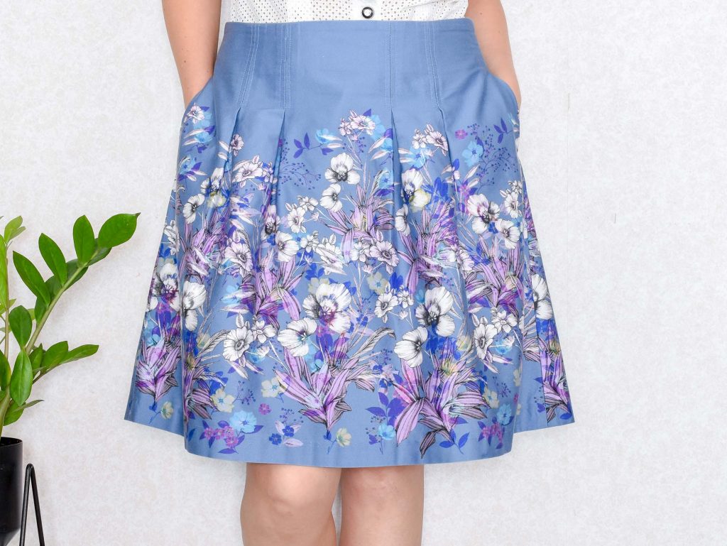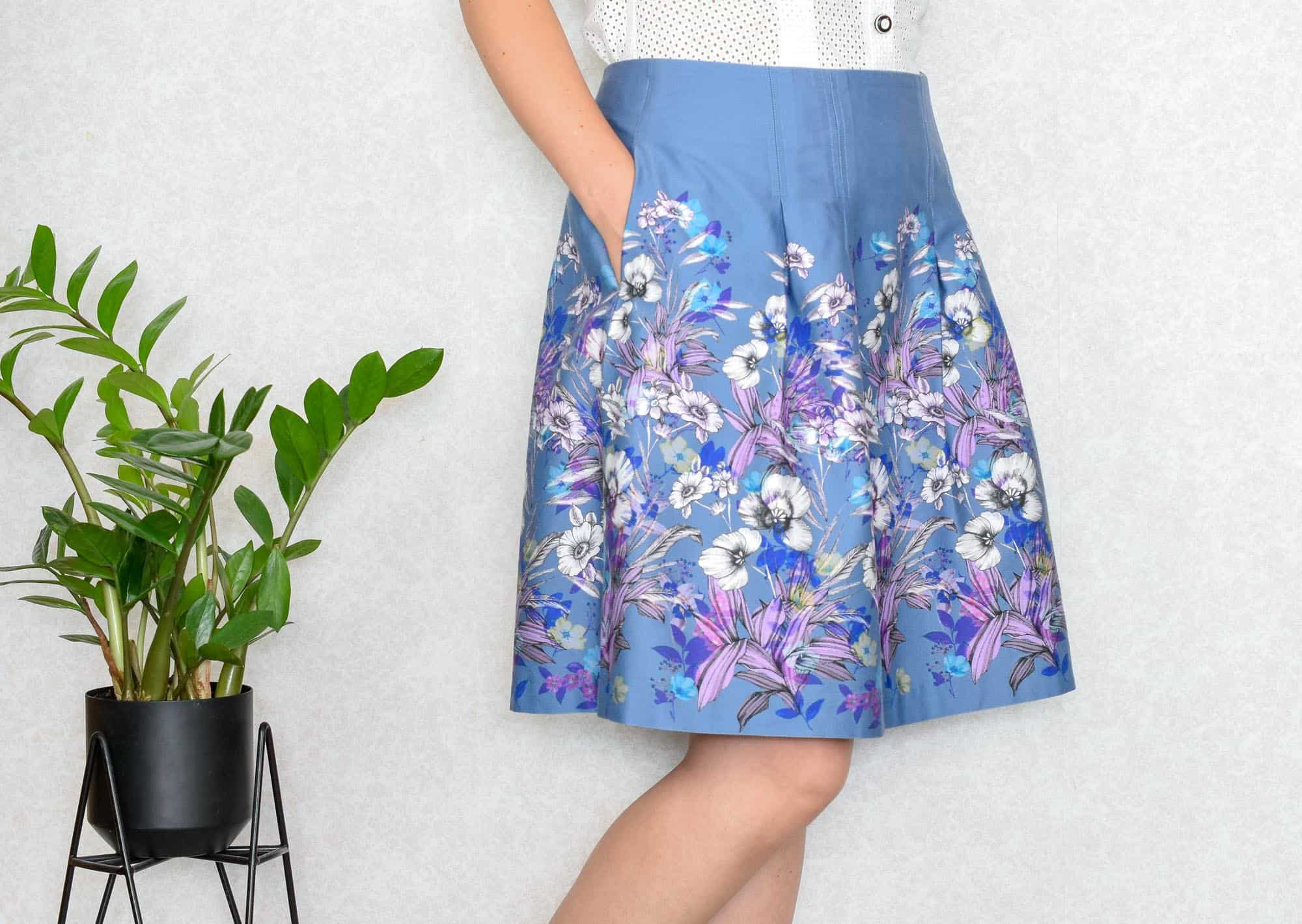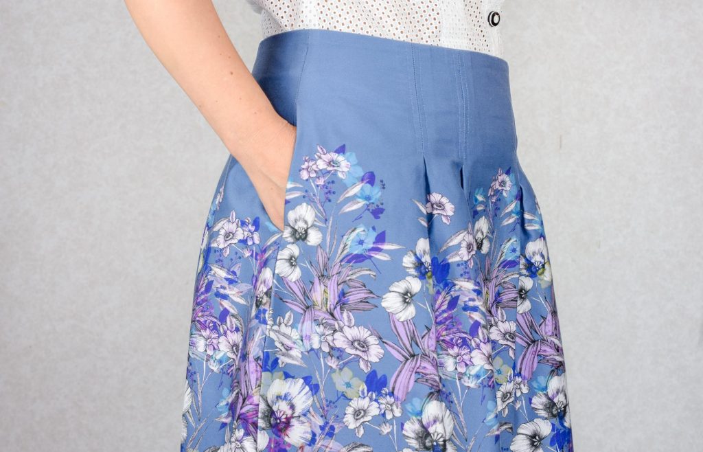 I was on a real skirt making kick this summer and this skirt with the most amazing border print I’ve ever encountered has fast become a wardrobe favourite. In this post I also have some cool tips on sewing a skirt with pockets and pleats, using garment industry techniques that can be done our home sewing machines.