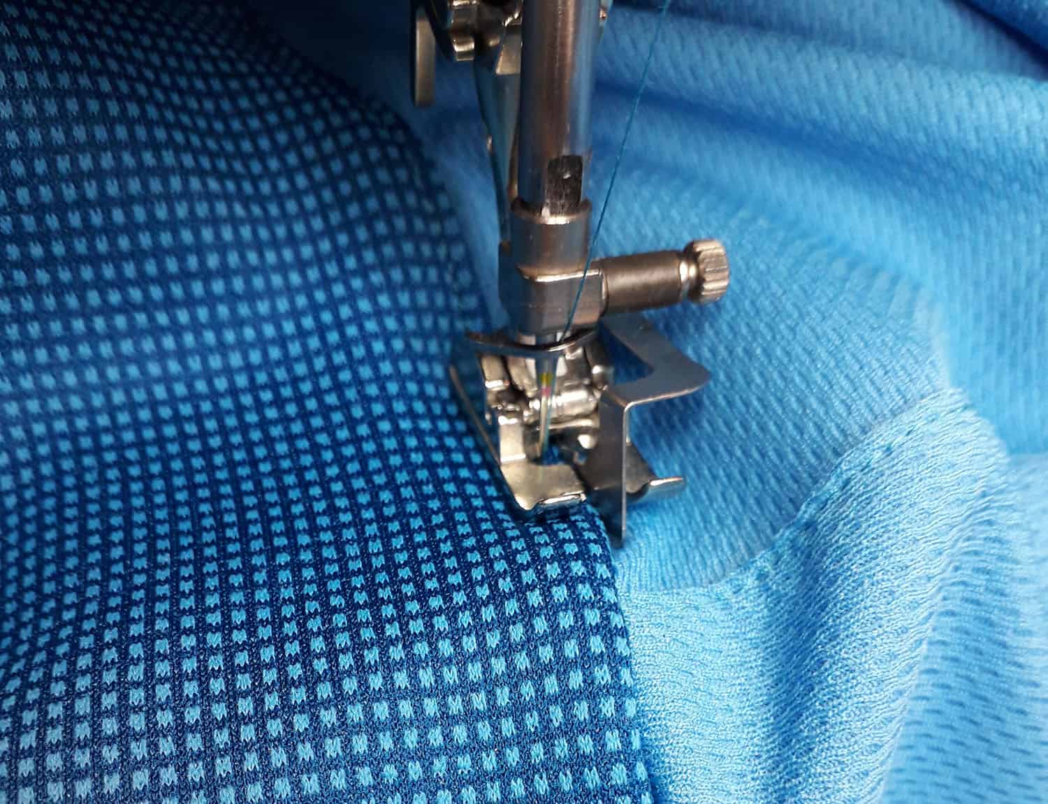 Instead, use a zigzag or stretch stitch, or if you have a coverstitch, a chainstitch or a narrow 2-needle stitch will work very well too.