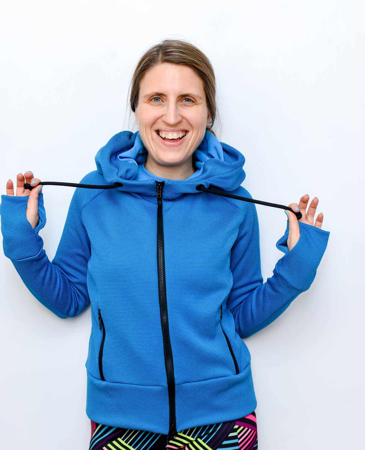 So let’s take a look at the first piece of my latest activewear collection, a fleece jacket made out of a really fun factory second stretch fleece that I found at a local fabric store. This was a project that has been on my mind since I retired my old fleece jacket after almost a decade of wear.