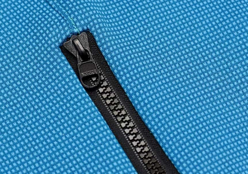 The brand is YKK (love them) and the zipper is a two-way, which I find essential for workout jackets, I always pull-up the lower zipper once I get warm to let in some cooling air.