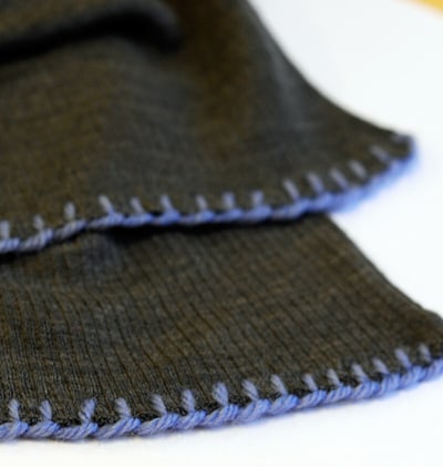 Instead, use a zigzag or stretch stitch, or if you have a coverstitch, a chainstitch or a narrow 2-needle stitch will work very well too.