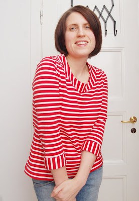 This is such a lovely top. I really like the way the red/white stripe combination suits you.