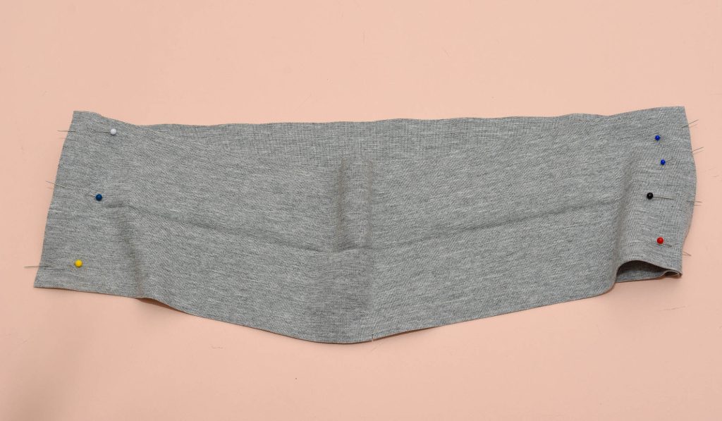 Pin the pieces together at the sides, wrong sides up, right sides facing to form a loop.